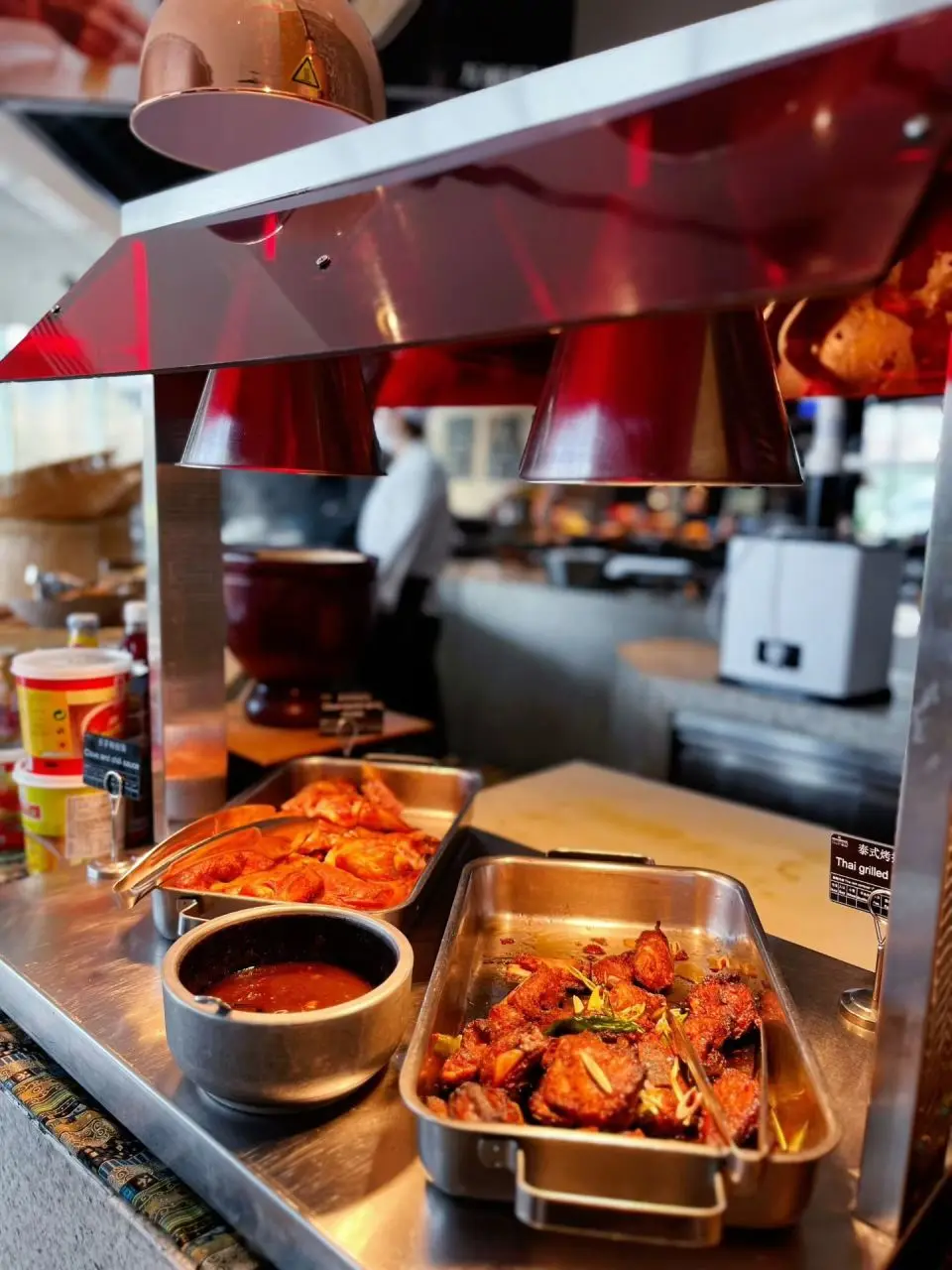 特色档口的香茅烤春鸡也不能错过,皮脆肉嫩,香茅的清新沁入每一丝肌理,咬开瞬间肉汁迸发,满是东南亚的鲜活气息。